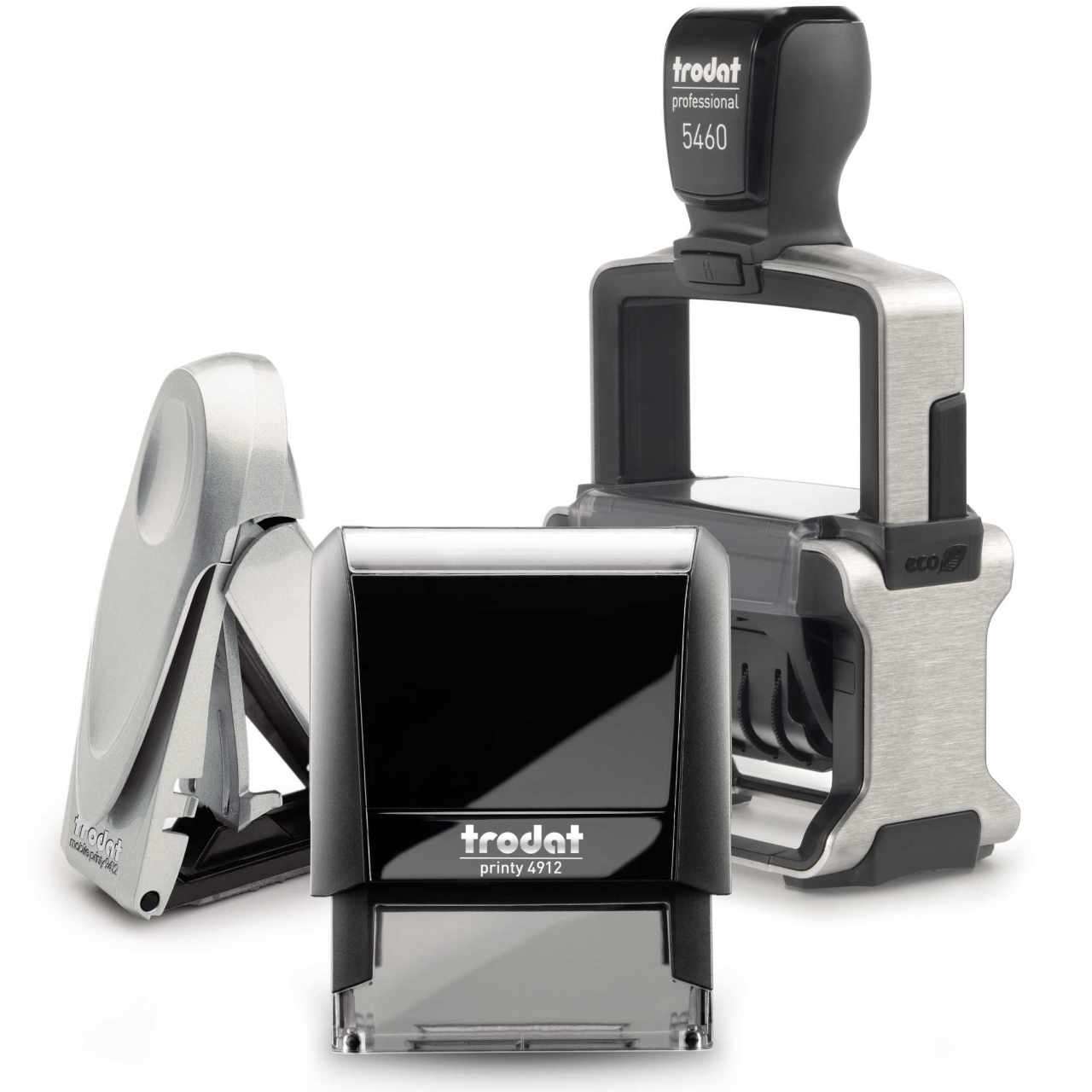 Original selbstfärbende Printy-Stempel von TRODAT mit eingebautem Stempelkissen. Solide Selbstfärbestempel mit Stempelkissen in vielen verschiedenen Farben.